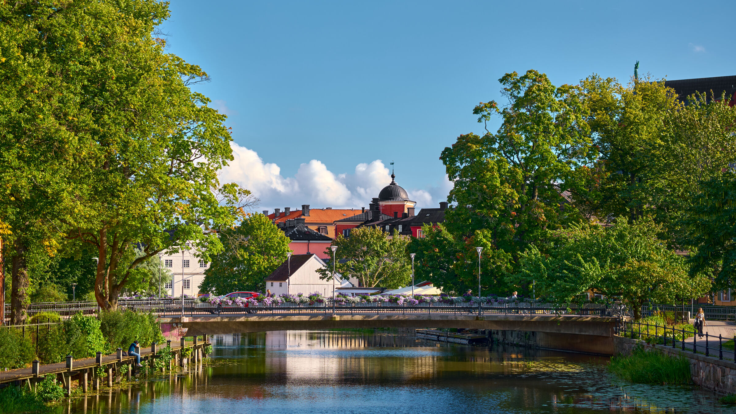 Urban scenes across Europe: canals, windmills, church spires, train stations, waterfronts, and old towns.